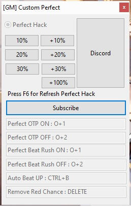 - Perfect Hack Percentage 10%~30% [Normal Mode]